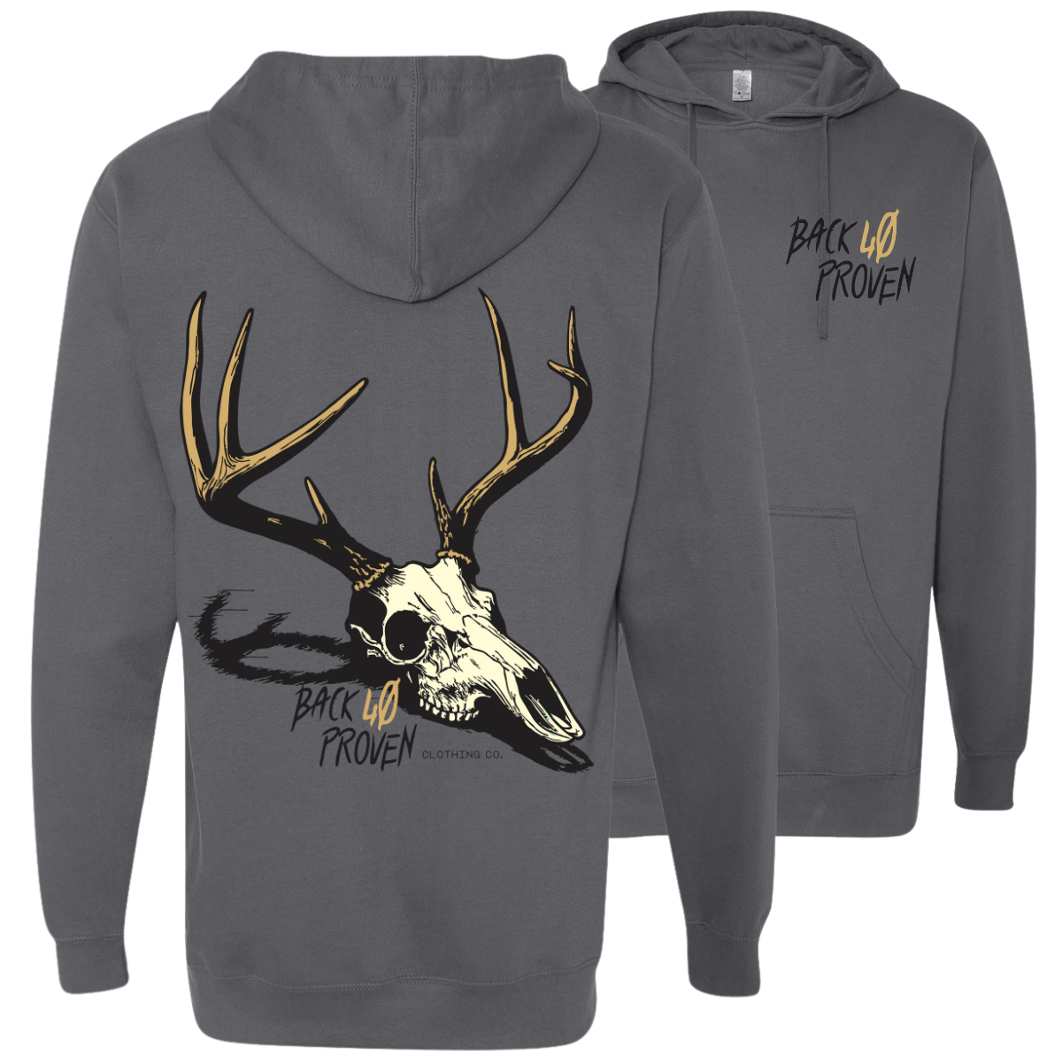 Whether you’re gearing up before daylight, winding down after a hard day’s work, or just repping that Back 40 grit, this hoodie’s got your back.